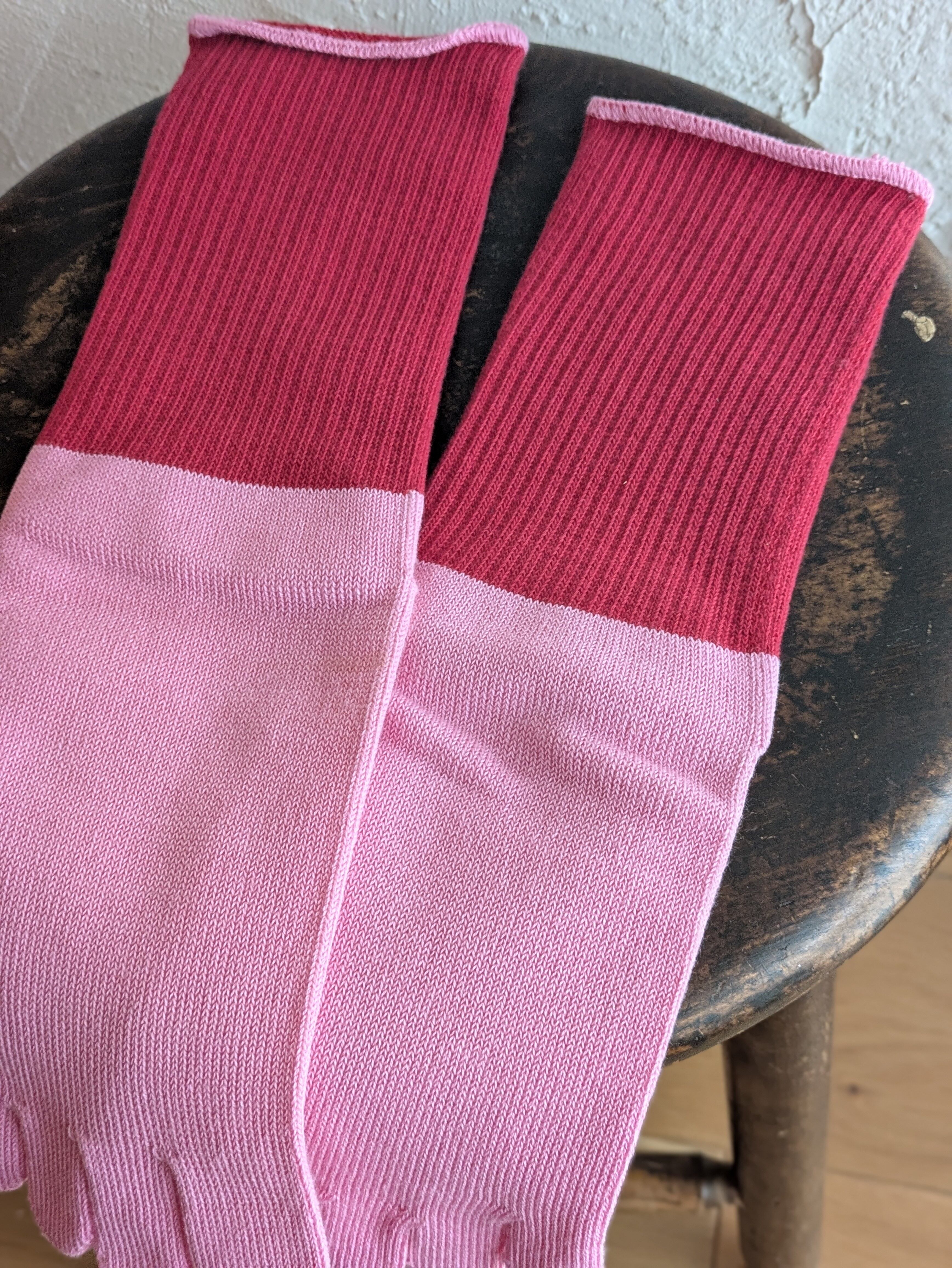 ツートン博士靴下 ピンク×赤×糸ピンク 22-24㎝